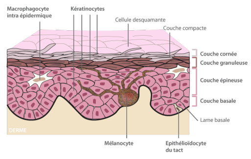 Les couches plus profondes (couche granuleuse,épineuse et basale) assurent le renouvellement cellulaire, la vascularisation, la production de collagène, etc.