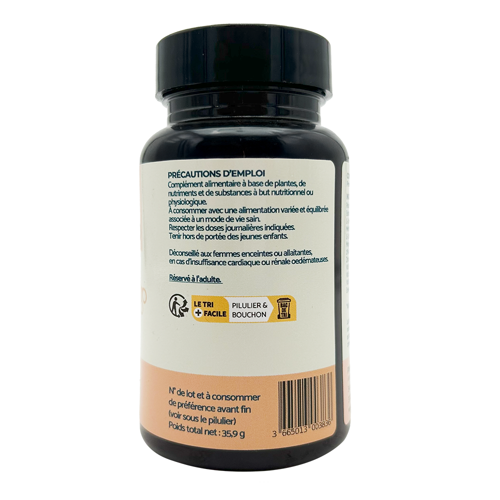 Complément alimentaire à base de plantes, de nutriments et de substances à but nutritionnel ou physiologique. À consommer avec une alimentation variée et équilibrée associée à un mode de vie sain.