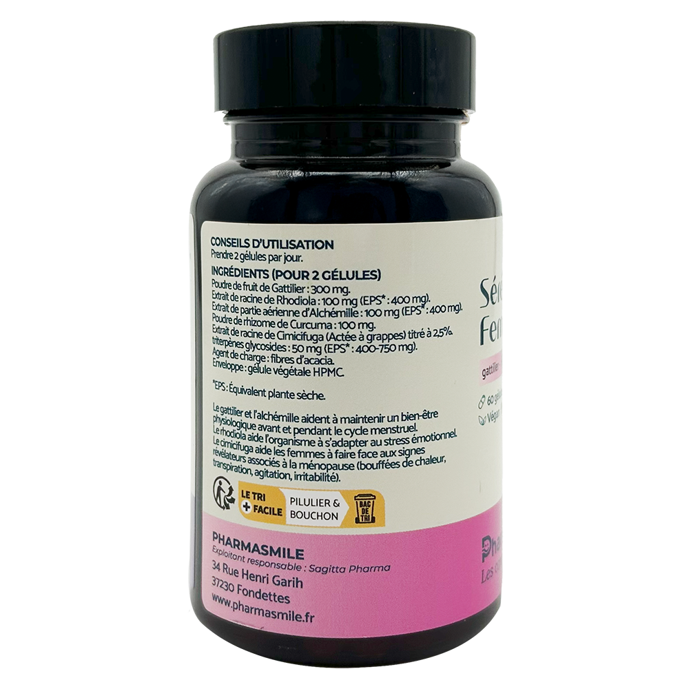 Sérénité Femme combine des ingrédients naturels aux actions complémentaires, aidant à apaiser les désagréments liés au cycle menstruel et à la ménopause, pour un confort hormonal durable sans perturber les équilibres naturels.